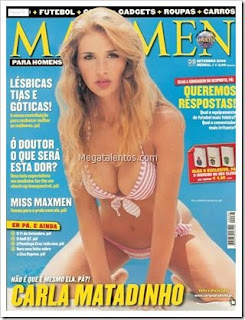 Carla Matadinho, 27 años, es una de las modelos portuguesas más famosas en la actualidad. A los 19 ganó el concurso de Miss Playboy TV Portugal 2002 y se convirtió en la primera Miss Playboy portuguesa de la historia. Carla Matadinho hoy en día tiene una carrera sólida en el mundo de la moda, siendo parte de la agencia FACE y ha sido portada de muchas resvitas de moda y espectaculo. Veamos a continuación una sesión fotográfica de la super modelo en la Revista Maxim (Maxmen en Portuguez).